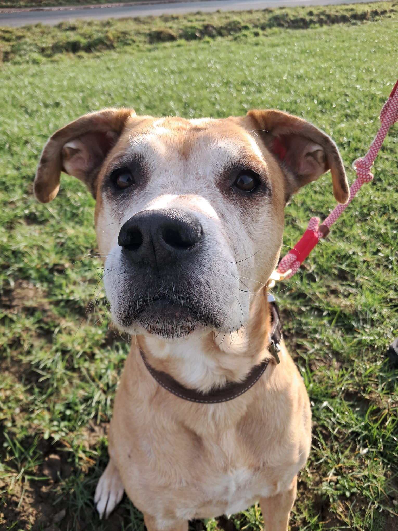 An der Leine läuft er mittlerweile super, ist ansprechbar, gut führbar und lässt sich aus Situationen herausnehmen.