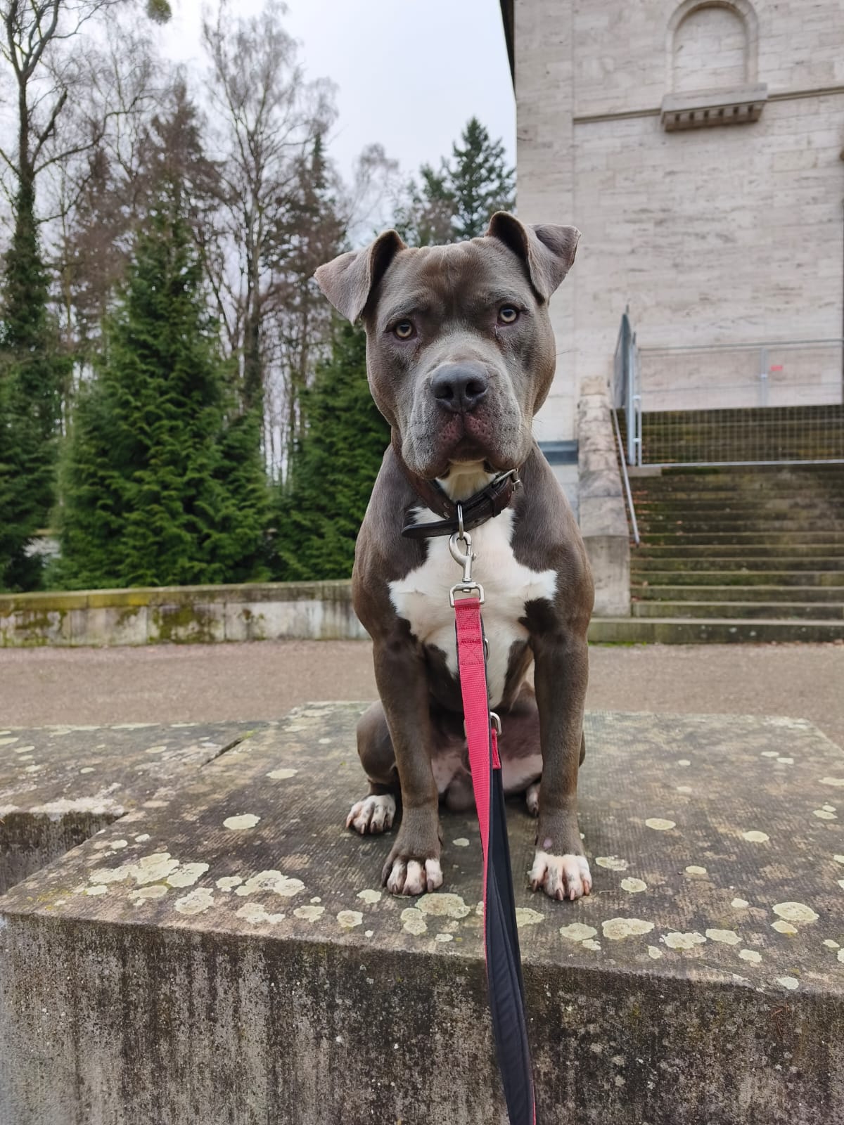 Pepper wurde vor der Beschlagnahmung gerettet und kam in unsere Obhut. Mit ca. 1,5 Jahren suchte Pepper nun sein neues Zu hause. Auch diese Vermittlung ging wieder rasend schnell. Ein Familienmitglied eines unserer Mitglieder der IG waren auf der Suche nach solch einem quirligen Kerlchen und haben sich nach dem ersten Kennenlernen Hals über Kopf in Pepper verliebt. Was kann es schöneres geben als bei einer erfahrenen „Kampfschmuser- Familie“ einziehen zu dürfen. Die souveräne Hündin Baily unserer IG Mitgleider wird Pepper nun alles wichtige beibringen wenn er zu Besuch kommt.
