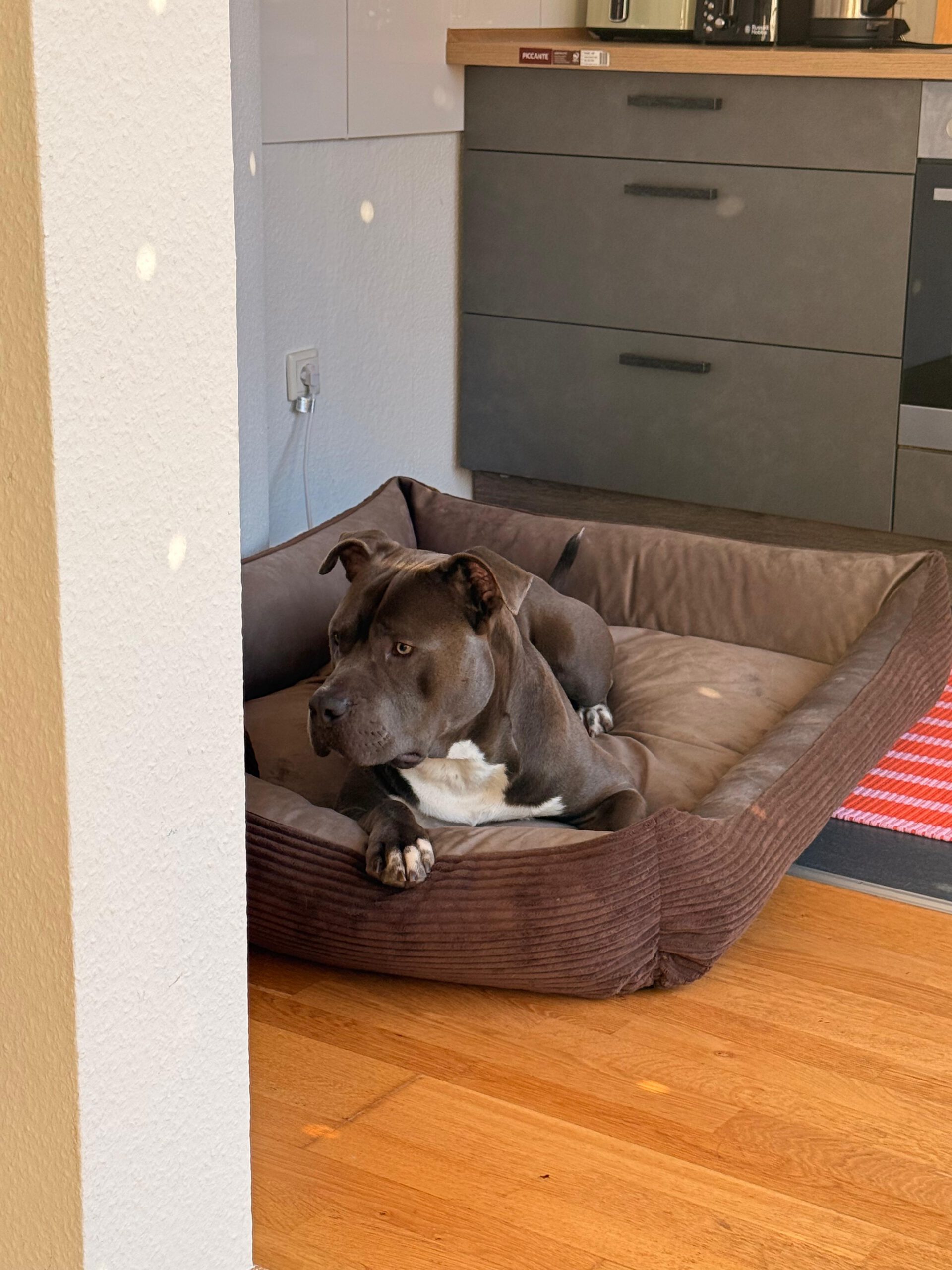 Jungspund Carlos, geboren im November 2019. Der süße Presa Canario musste von seiner damaligen Familie schweren Herzens wieder abgegeben werden, da die Tochter allergisch auf Carlos reagierte. Diese Reaktion des Körpers konnte nicht nachvollzogen werden, denn Carlos war nicht die erste Fellnase womit die Tochter aufwachsen durfte. Bevor Carlos kam hatte die Familie bereits einen Presa Canario wo solche Anzeichen nie aufgetreten sind. Nachdem sie von ihren grauschnäuzigen Presa Canario Abschied nehmen mussten und ihn über die Regenbogenbrücke haben gehen lassen, sollte Carlos die Familie wieder aufwirbeln. Dazu ist es leider nicht gekommen. Nun ist er aber zu seiner neuen Familie nach Aurich gezogen. Hier genießt Carlos das Leben als Zweithund mit Kindern die ihm das Leben versüßen.